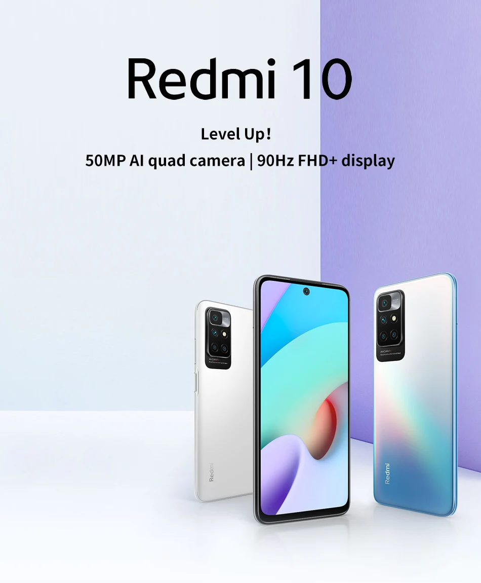 Смартфон Xiaomi Redmi 10, 64 ГБ128 ГБ, 50 МП, четыре AI-камеры, 90 Гц, FHD + дисплей, Восьмиядерный Helio G88, аккумулятор 5000 мАч