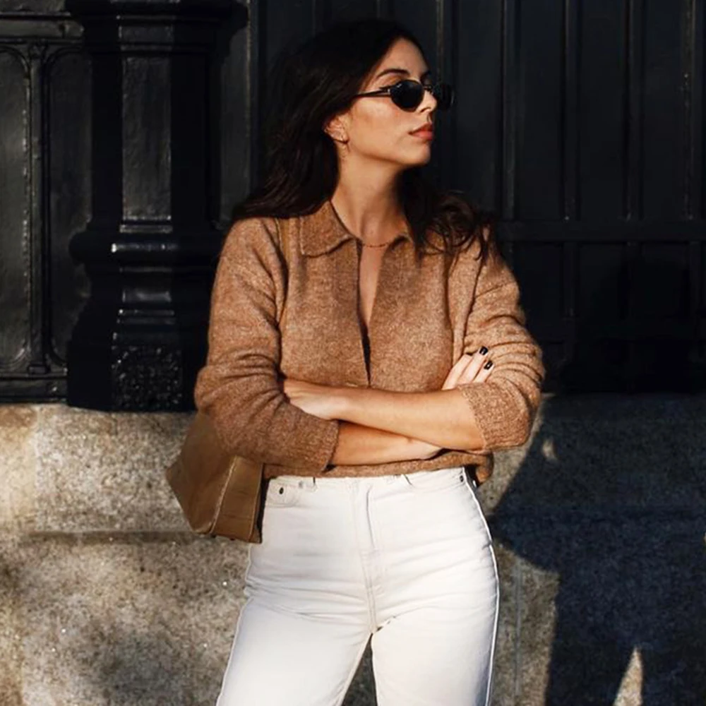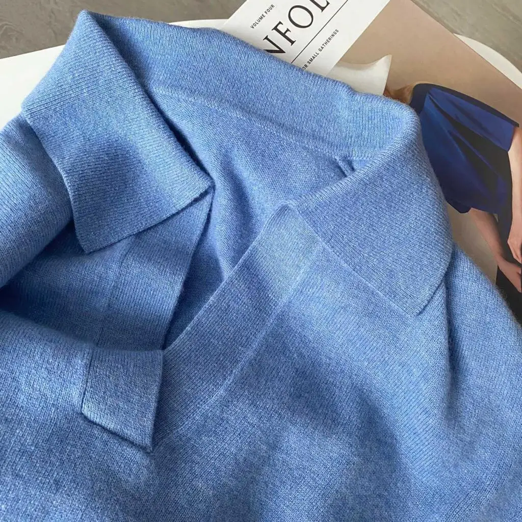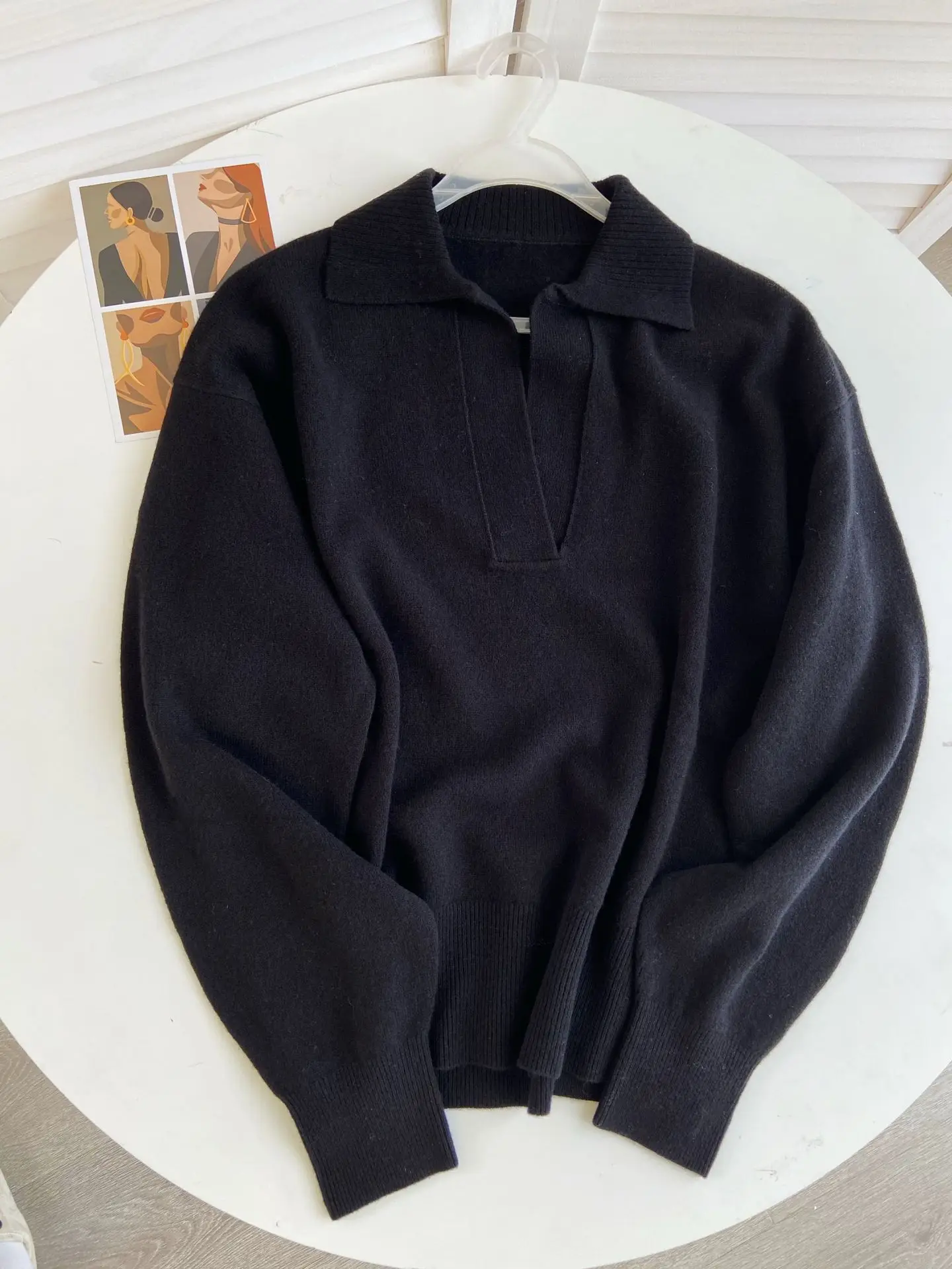 Женский мохеровый пуловер с глубоким V-образным вырезом и длинным рукавом
