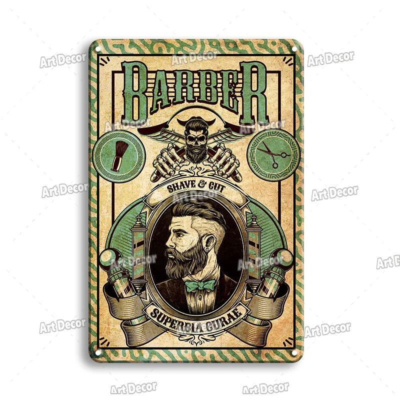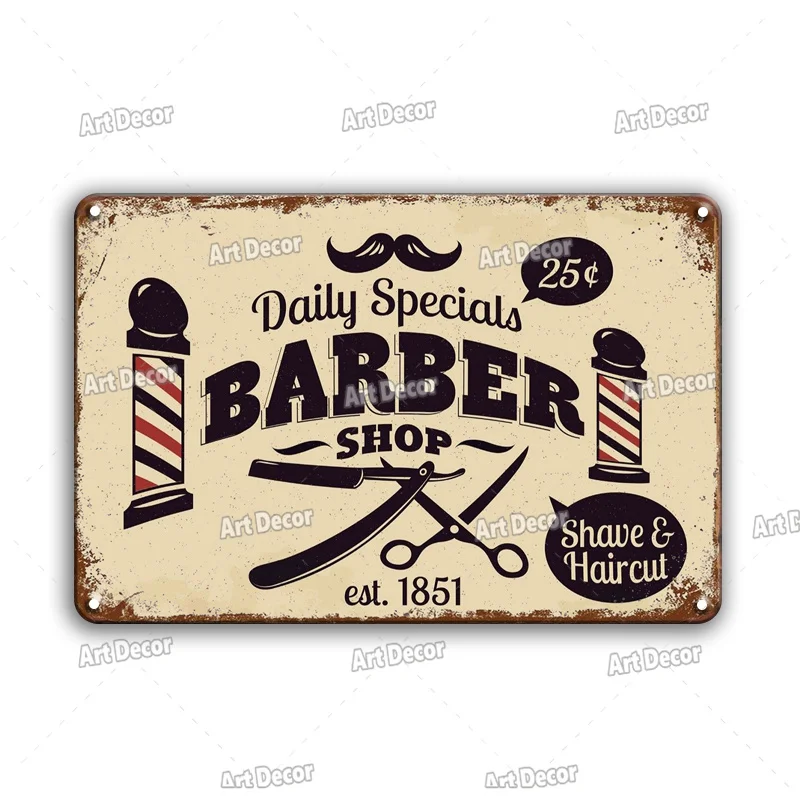 Винтажный художественный постер парикмахерской, металлическая пласт...
