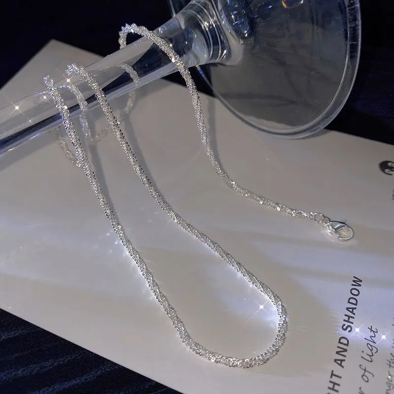 Женское ожерелье из серебра 925 пробы, со сверкающей цепочкой до кл...