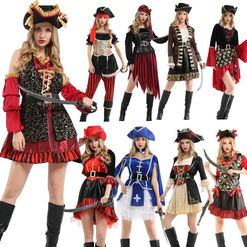 Костюм пиратской Вечеринки На Хэллоуин для косплея Карибского пирата с шляпой головные уборы праздничный взрослый женский Рождественский без оружия