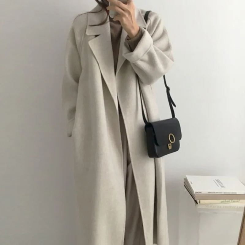 Женское длинное пальто, элегантное шерстяное пальто с поясом, однот...