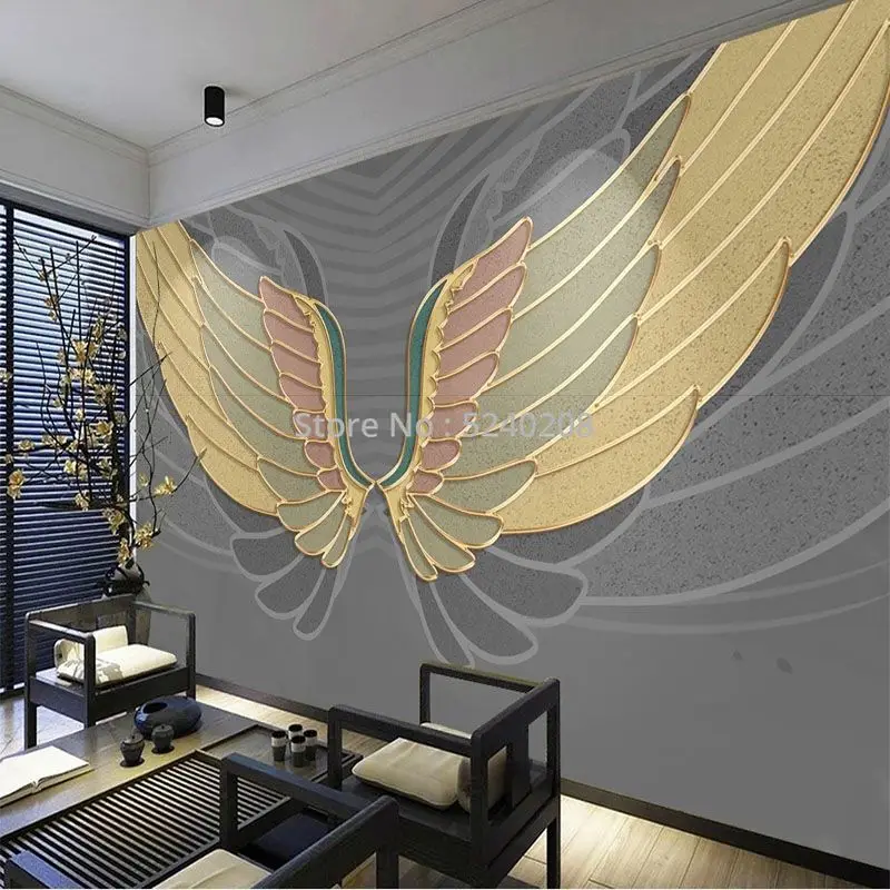 Пользовательские обои 3D светлый роскошный ручная роспись крылья узор золотые тисненые линии фон стены Papel De Parede настенная живопись