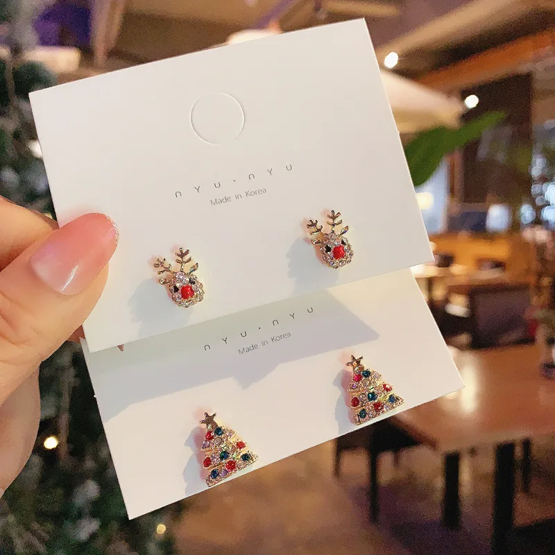 Модные рождественские серьги для женщин и мужчин парные кольца очаровательные браслеты 2021 модные подарки милые Стразы олени снежинки комплект ювелирных изделий