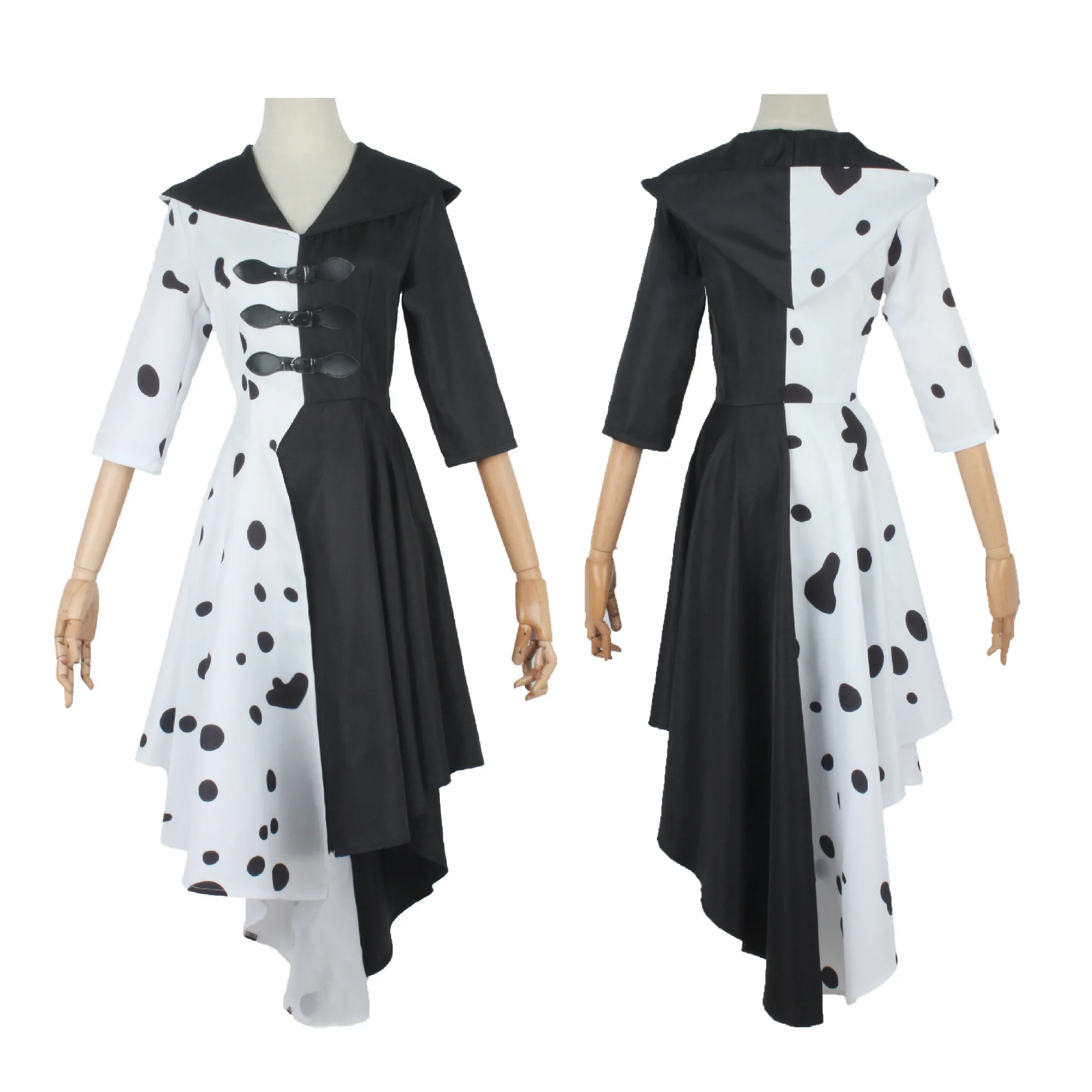 2021 новый фильм злые мадам Круэлла искусственное платье черно-белое искусственное платье парик для вечеринки