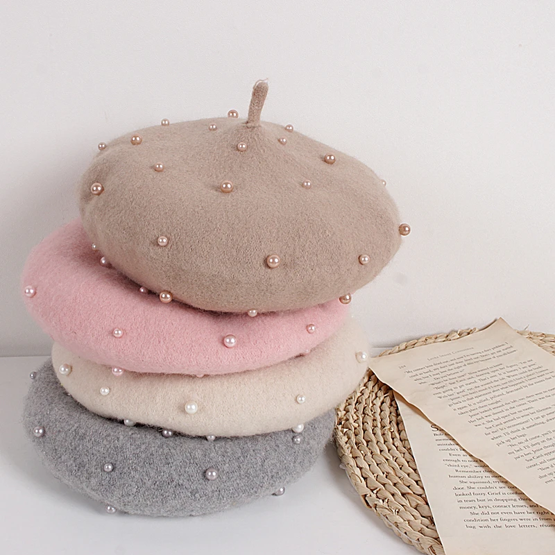 Милый берет с жемчугом для девочек, шапка в стиле принцессы разных цветов для весны, осени и зимы, сохраняющие тепло детские шапки, шапки