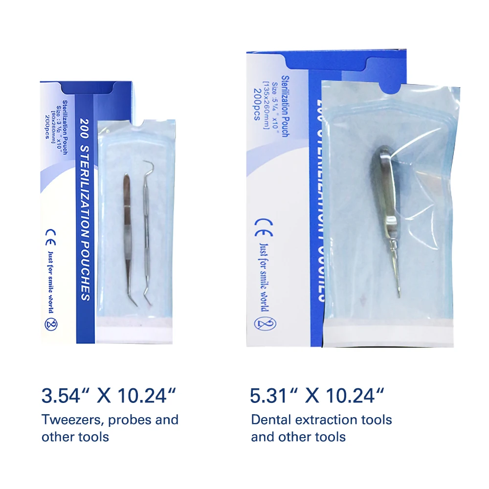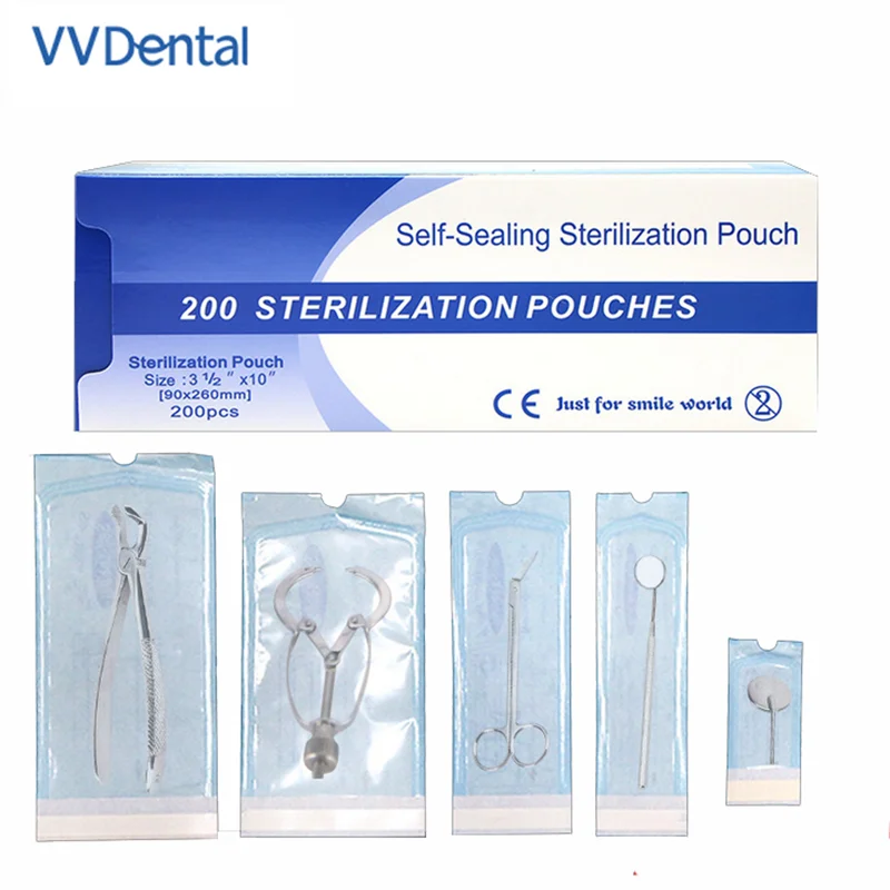 Самозапечатывающиеся мешочки для стерилизации VV Dental 200 шт.кор., медицинская сумка, одноразовая тату, стоматологическая сумка для ногтей арт-сумка