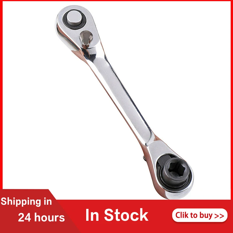 -Двусторонняя рукоятка храповика с 2 размерами, которая включает в себя 1/4 дюймовый Квадратный привод и 1/4 дюймовый шестигранный бит-драйвер.