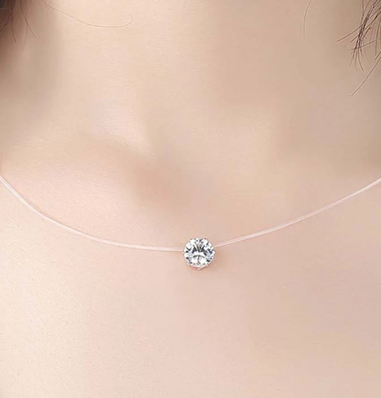 2021 женские модные украшения из циркония, ожерелье для женщин, невидимая прозрачная леска, простое ожерелье с подвеской, ювелирные изделия для женщин