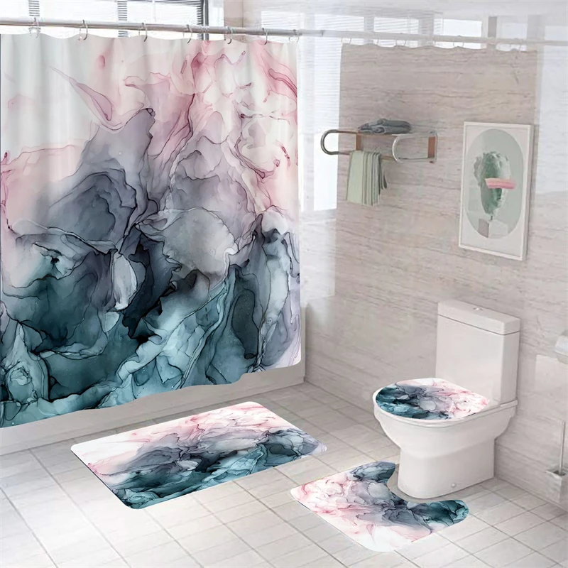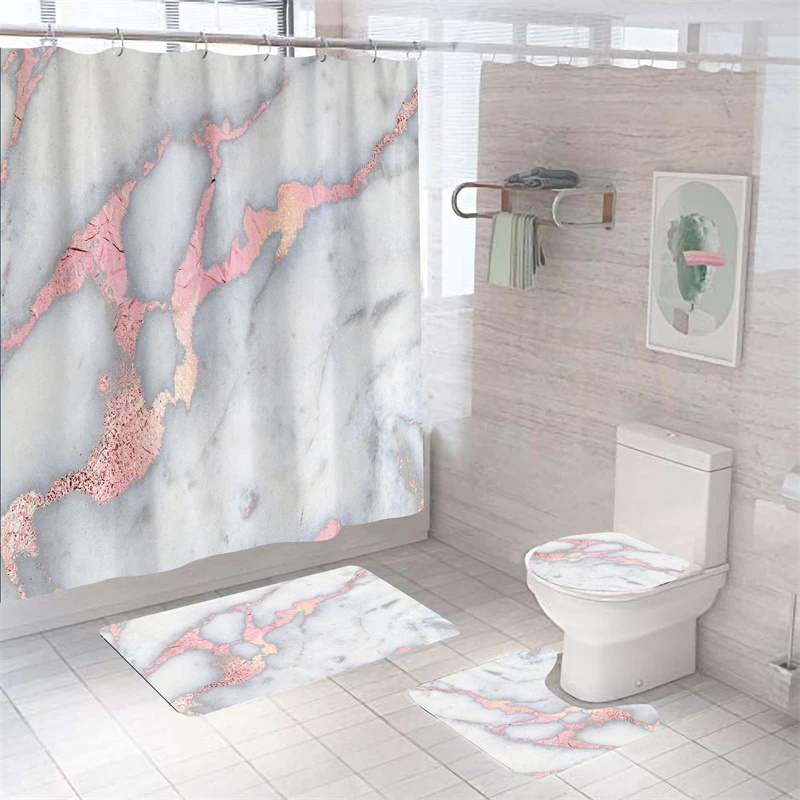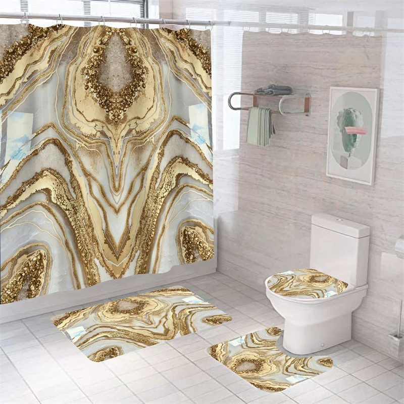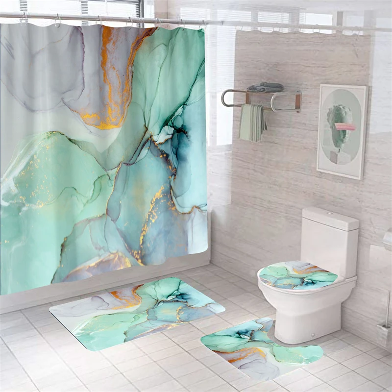 Мраморные занавески для душа в комплекте, роскошный водонепроницаемый коврик для ванной из полиэстера, домашний декор, чехол на сиденье унитаза, занавески для ванной комнаты, аксессуары