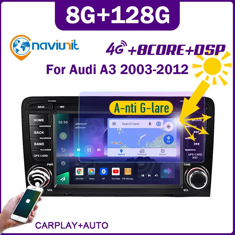 Автомагнитола 2 din android 11, стерео экран для Audi A3 RS3 Sportback 8P S3 2003-2012, интеллектуальная система, мультимедийные видеоплееры