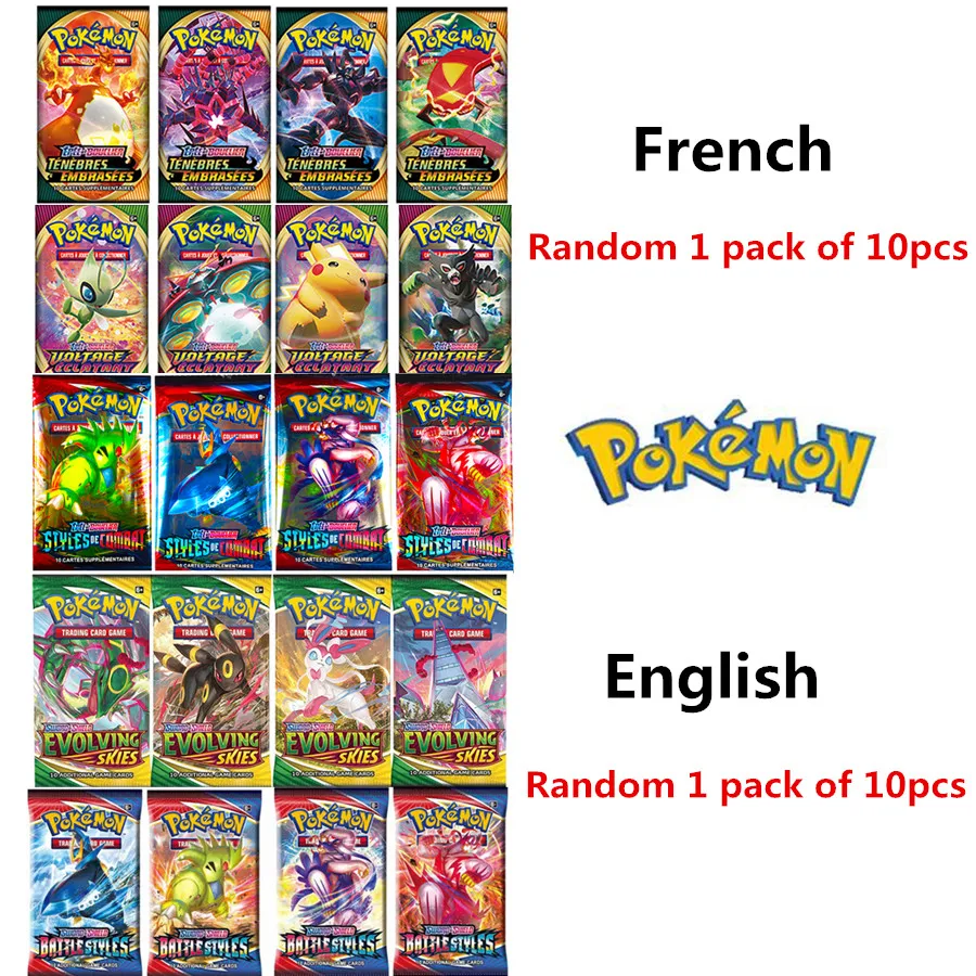 10 шт. карты покемона на английскомфранцузском языках, команда GX, Vmax EX Mega Energy, блестящий Покемон, карточка, игра, коллекционная карточка, карты покемона