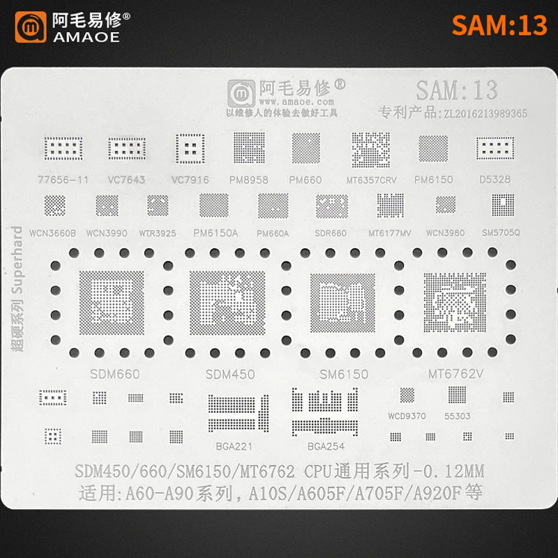 Трафарет для реболлинга SAM13 BGA, трафарет для ЦП Samsung A10S, A2...