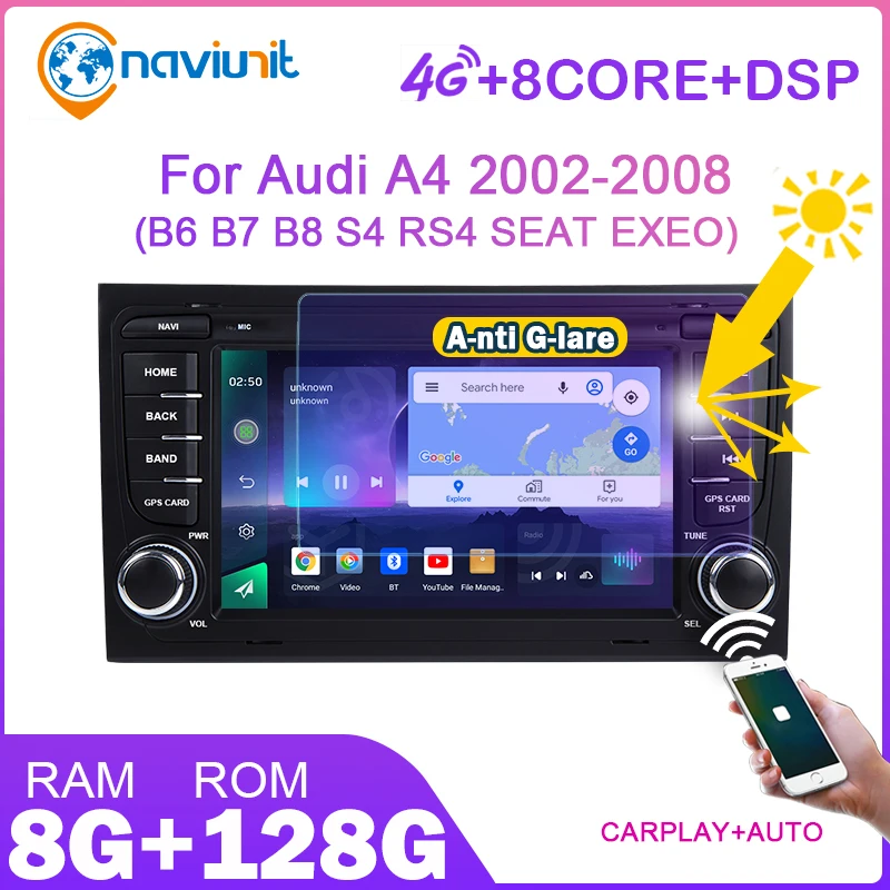 Автомагнитола 2 din, android 11, стерео экран для Audi A4 B6 B7 S4 RS4 Seat Exeo 2002-2012 Carplay, мультимедийные видеоплееры, bluetooth