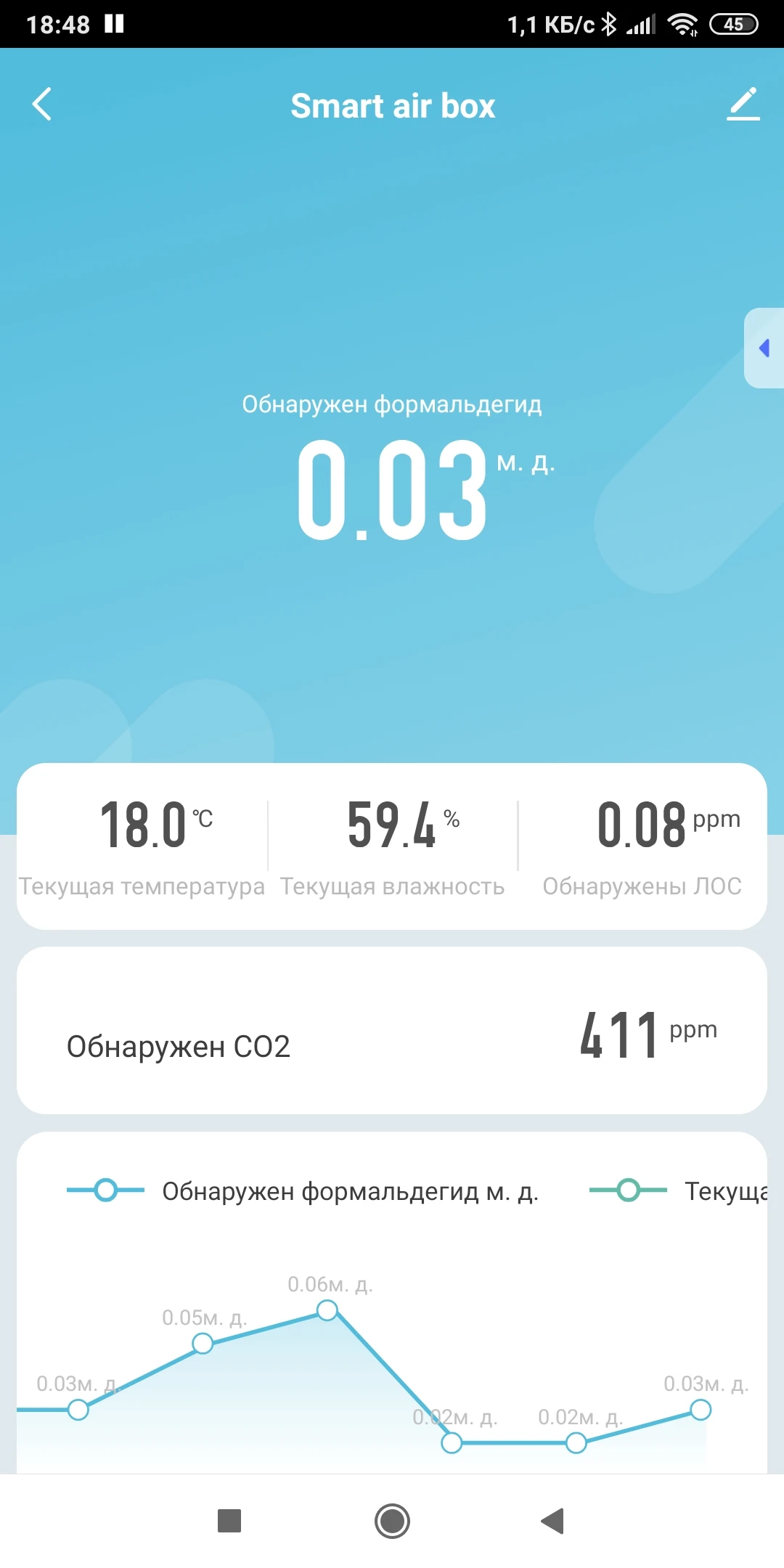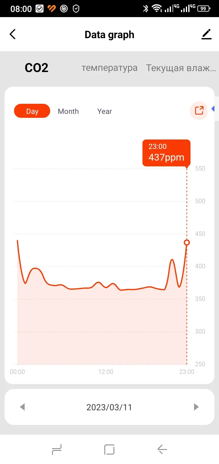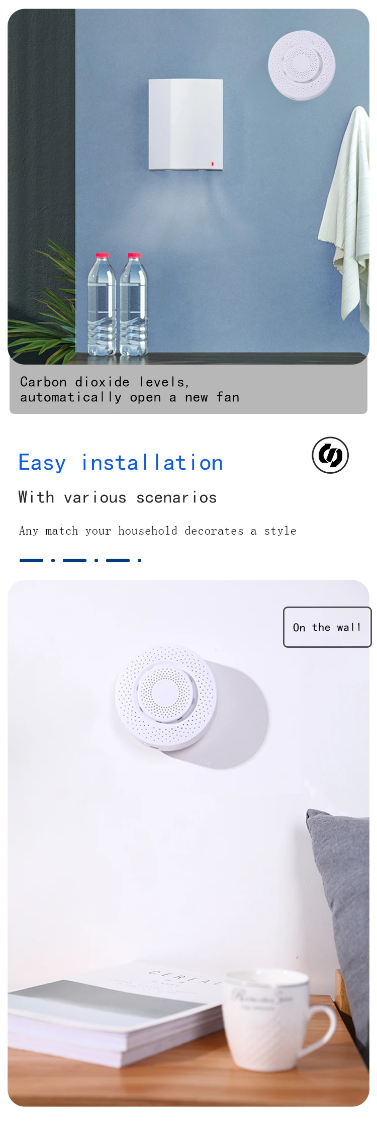 Значение CO2 достигается путем преобразования ЛОС и значения температуры. Это аналоговое значение, а не настоящее значение обнаружения. Значение только для справки, а не для профессионального тестирования.