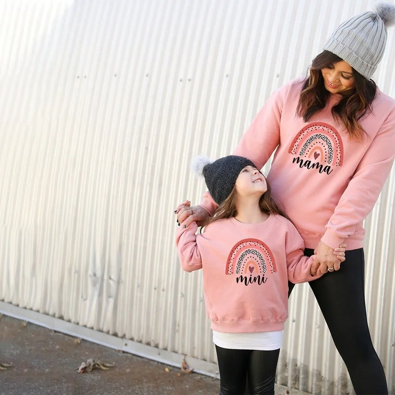 мама дочка комплекты одежда для малышей фэмили лук мама и дочь Одежда для мамы и дочки с радужным принтом, топы, пуловер для мамы, детей и девочек, свитшоты, наряд для мамы и дочки, семейная Одинаковая одежда