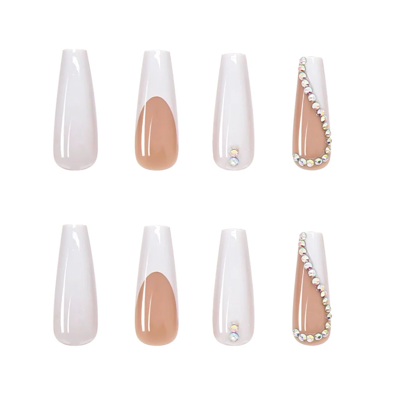 Белый французский накладной ноготь, длинный размер XL, стразы, дизайн Z156