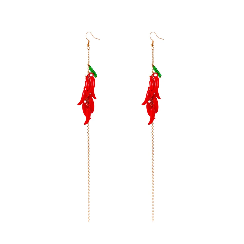 Креативные длинные висячие серьги с красным перцем, индивидуальные серьги с кисточкой с красным перцем для женщин, серьги, ювелирные изделия, серьги, подарок