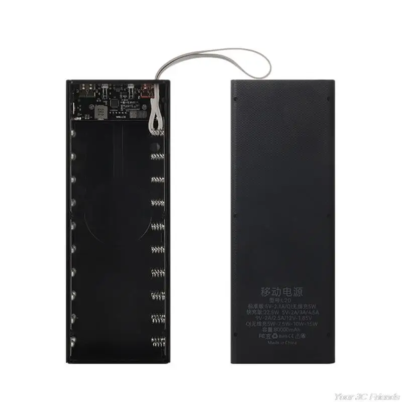 22,5 W QC3.0 PD ЖК-дисплей 20x18650 Быстрая зарядка Батарея Чехол Съемный Мощность внешнего аккумулятора, Беспроводной зарядным устройствомИзготовлен из высококачественного материала, износостойкий и прочный.ЖК-цифровой дисплей, легко для вас контролировать емкость аккумулятора в реальном времени.Может быть установлен 20x плоский 18650 литиевый аккумулятор, может быть разобран повторно.Быстрая зарядка, подключи и работай, долгое время зарядки.Мини Портативный дизайн, удобно носить с собой. Светильник вес дизайна очень легко носить с собой.Совместимость с 99% usb-устройствами, такими как смартфоны, планшеты, компьютеры и так далее.Функция: Защита от температуры, защита от короткого замыкания, защита от сброса, защита от обратного соединения, защита от перегрузки по току, защита от перенапряжения, защита от перегрева батареи.Дизайн «сделай сам», прост и удобен в использовании. Идеально подходит для путешествий на открытом воздухе.Чехол только для внешнего аккумулятора, другие аксессуары на фото не включены!Спецификация: спецификация s:Тип товара: чехол для внешнего аккумулятораТри типа 0utput являются дополнительными:A: быстрая зарядка версия (USB максимальный Выход 22,5 W, без Беспроводной зарядки)B: стандартная версия (максимальный выход USB 10 Вт + выход беспроводной зарядки 5 Вт)C: супер быстрая зарядка версия (USB максимальный Выход 22,5 W + Беспроводной зарядки Выход 15 Вт)Батарея: 20x18650 (не входит в комплект)Материал: пластикРазмер: 222.5x81x42ммЦвет: белый, черный (опционально)Количество: 1 шт.Посылка включает в себя: 1 чехол для внешнего аккумулятораПримечание:Три типа 0utput являются необязательнымиПеревод ед. измерения: 1 см = 10 мм = 0,39 дюймовВозможны отклонения в 0-1 см вследствие измерений вручную. Пожалуйста, убедитесь, что вы не возражаете, прежде чем сделать ставку.Из-за разницы между различными мониторами изображение может не отражать фактический цвет изделия. Спасибо!