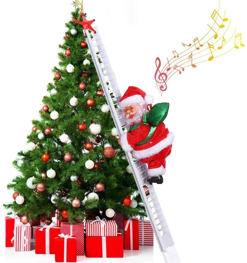 Подарок 2022, электрическая лестница для скалолазания, Санта-Клаус, искусство для дома, Рождественская елка, подвесной декор с музыкой