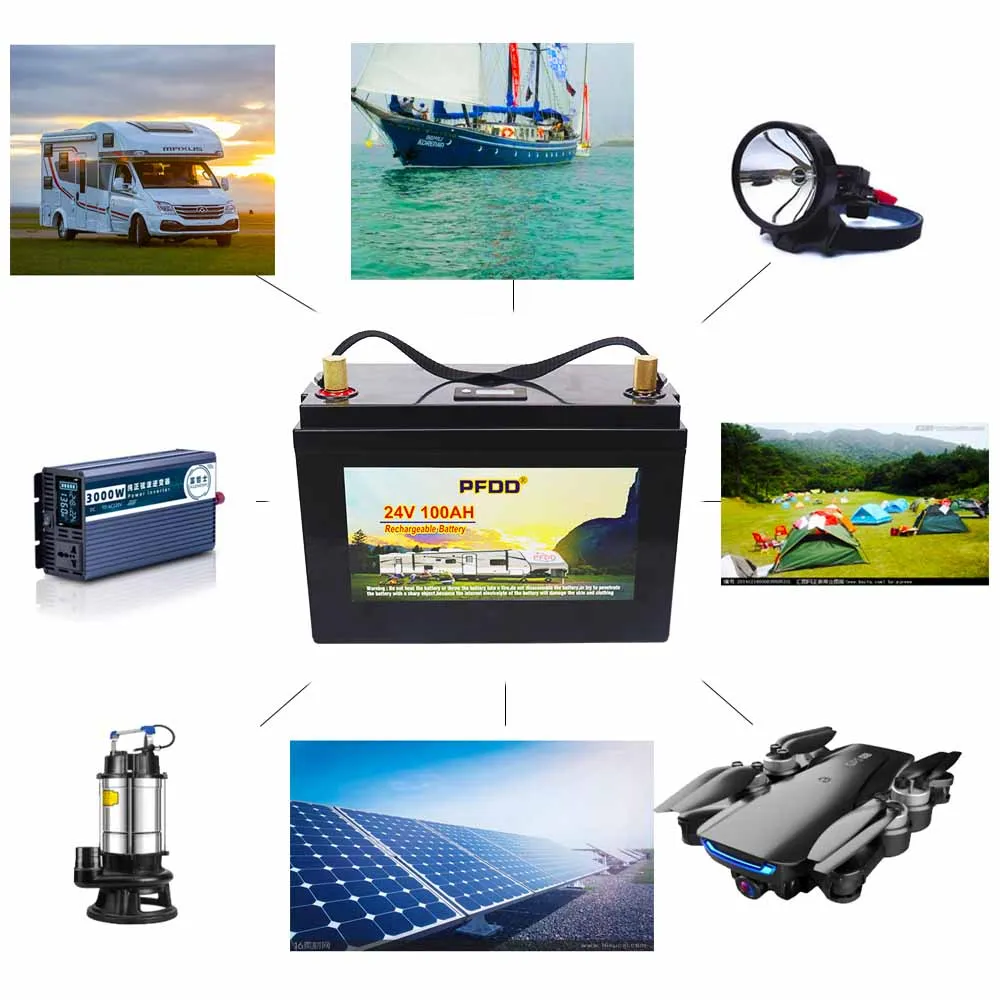 Комплект аккумуляторов LiFePO4 24 В, 300 Ач, 200 ач, 100 ач с литиевой батареей BMS для гольф-мобиля, для домов на колесах, кемперов, для бездорожья, для внедорожников, солнечной энергии
