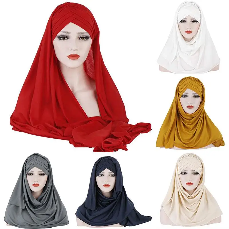 Многоцветный Мягкий Хлопок Мусульманский Платок Мгновенный Джерси Х...