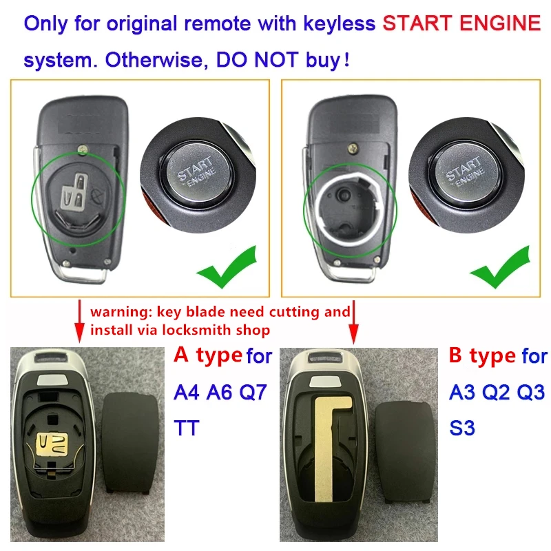 Модифицированный чехол для автомобильного ключа с дистанционным управлением, обновленный чехол для ключа без ключа для Audi A3 A4 A6 A8 TT Q2 Q3 Q5 Q7 S3 S5 R3 A7 RS3 RS5, чехол для ключа с дистанционным управлением