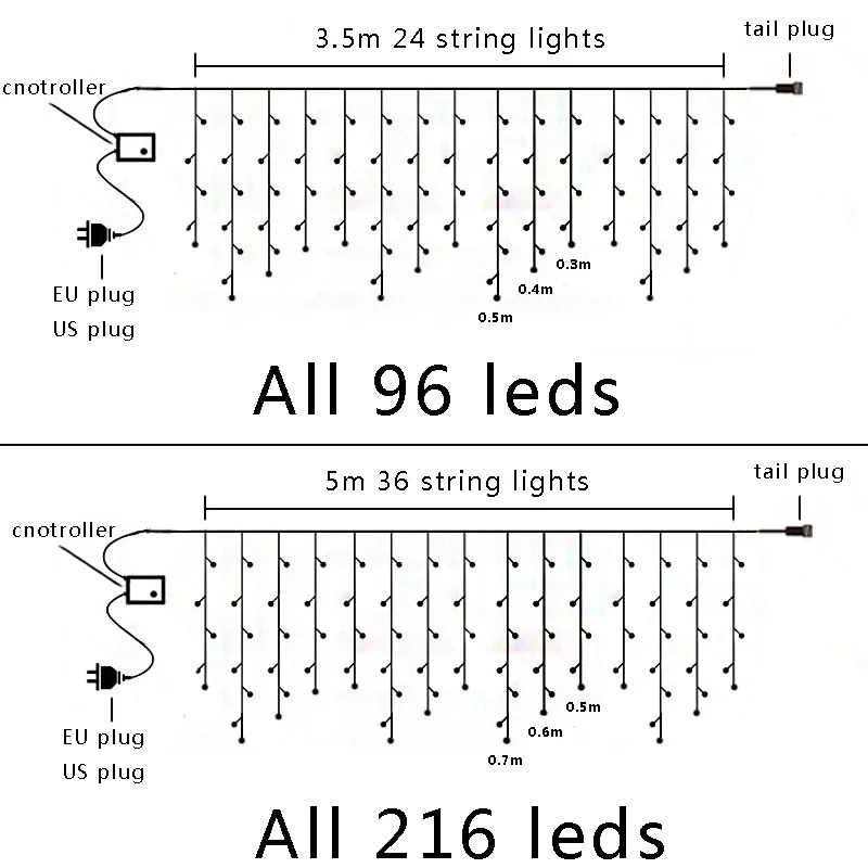 Рождественская уличная Гирлянда-занавеска в виде сосулек, светильник20 м, 220 В переменного тока, водонепроницаемый соединитель для Новогоднего декора