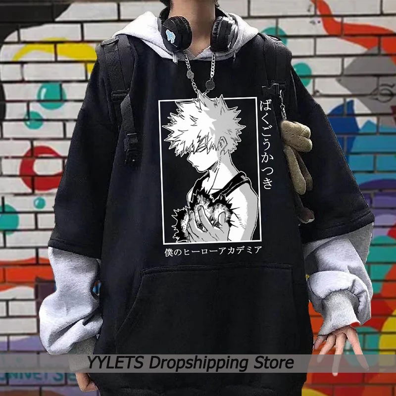 Толстовки с капюшоном My Hero академия, толстовка с длинным рукавом и графическим принтом аниме, Смешные Толстовки Bakugou Katsuki Harajuku, толстовки, пуловер