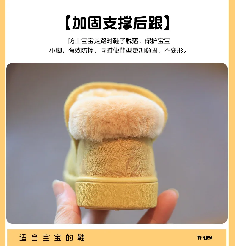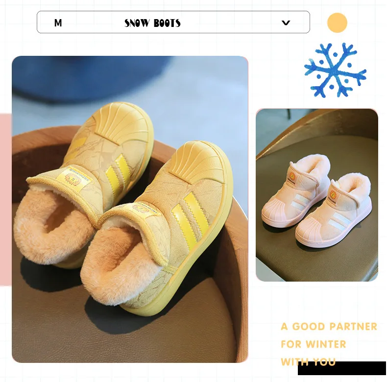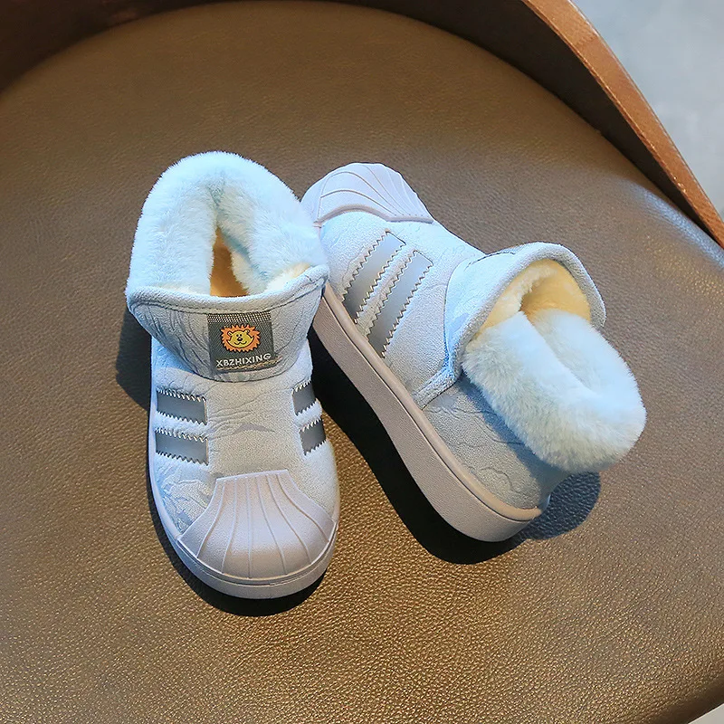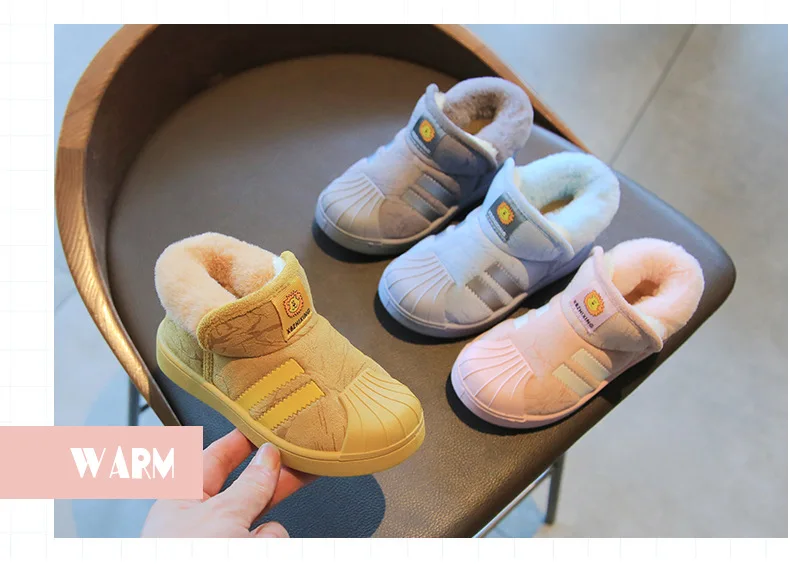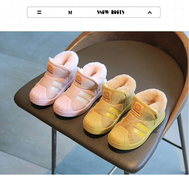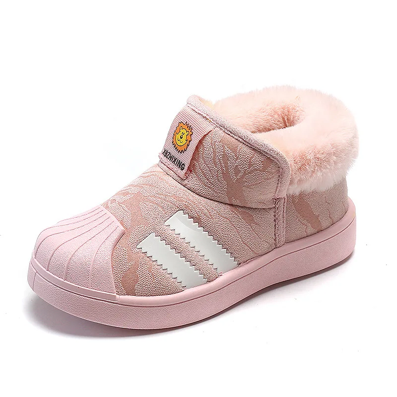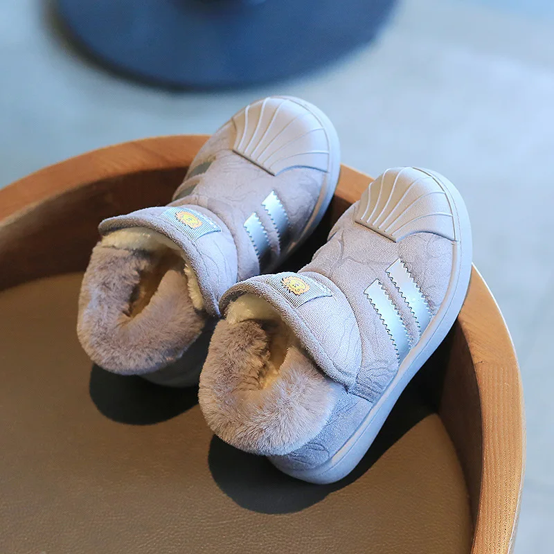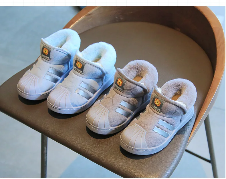 Зимние ботинки, плюс бархатные детские зимние ботинки, модные Нескользящие Детские ботинки с ракушкой и носком, хлопковая обувь, обувь для мальчиков и девочек
