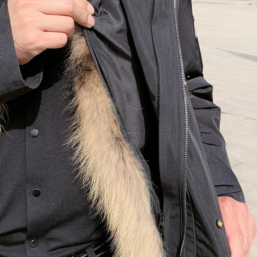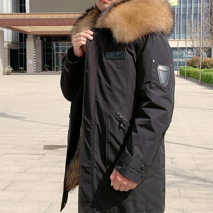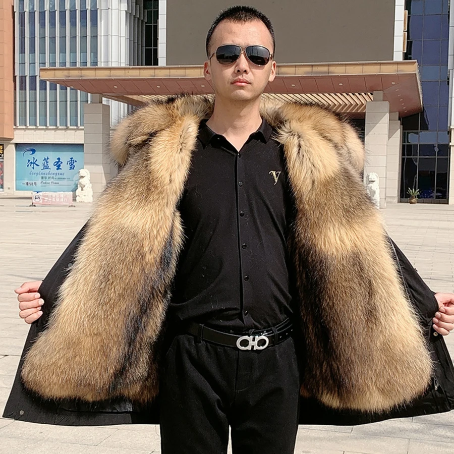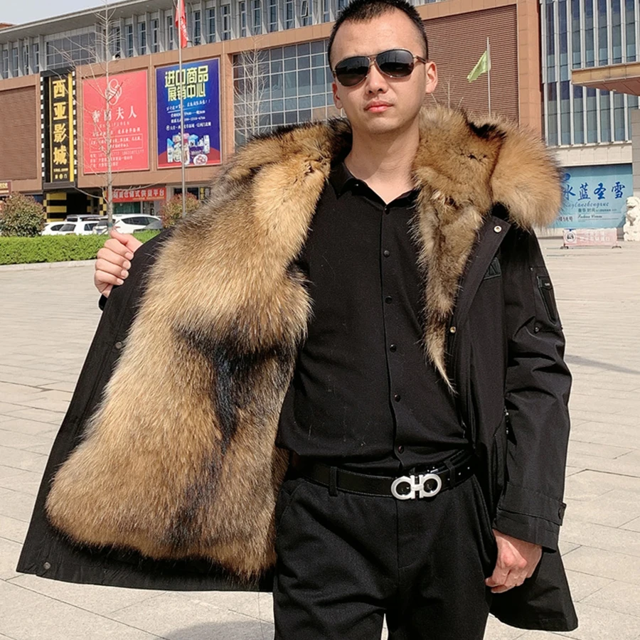 Мужские парки, пальто, куртка из натурального меха енота, зимняя мо...
