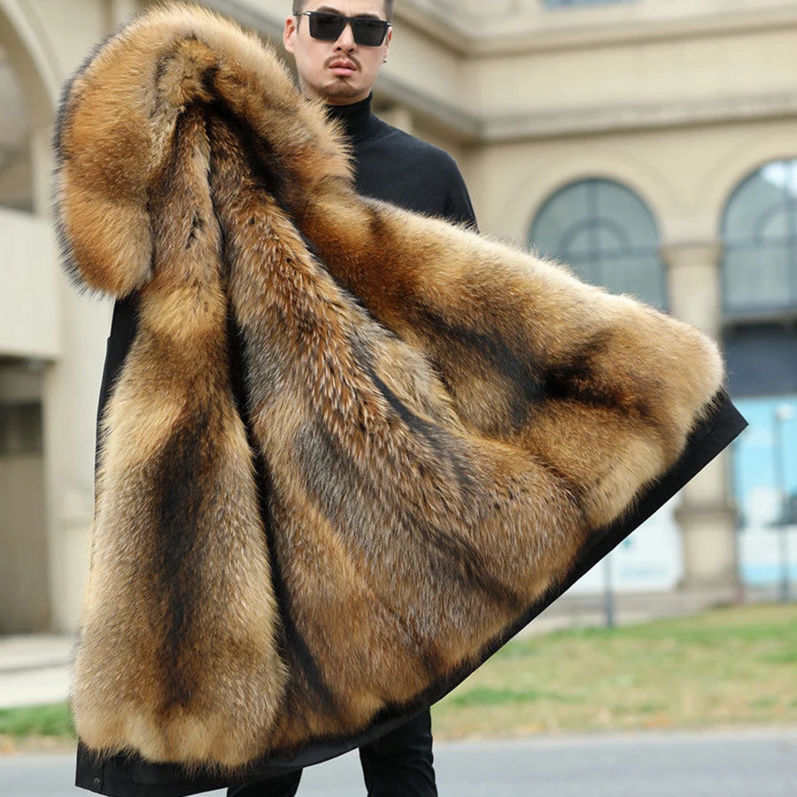 Мужская куртка из лисьего меха с капюшоном, зимнее меховое пальто, ...