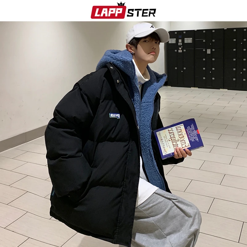 Парка LAPPSTER мужская из овечьей шерсти, однотонная пузырьковая куртка с капюшоном, стиль харадзюку, в стиле пэчворк, корейская зимняя, 2022