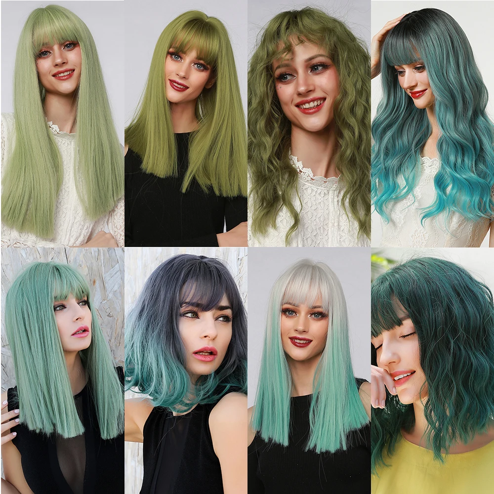 Все виды зеленых синтетических париков, женские длинные или короткие волнистые волосы, как косплей, натуральные Повседневные Вечерние парики