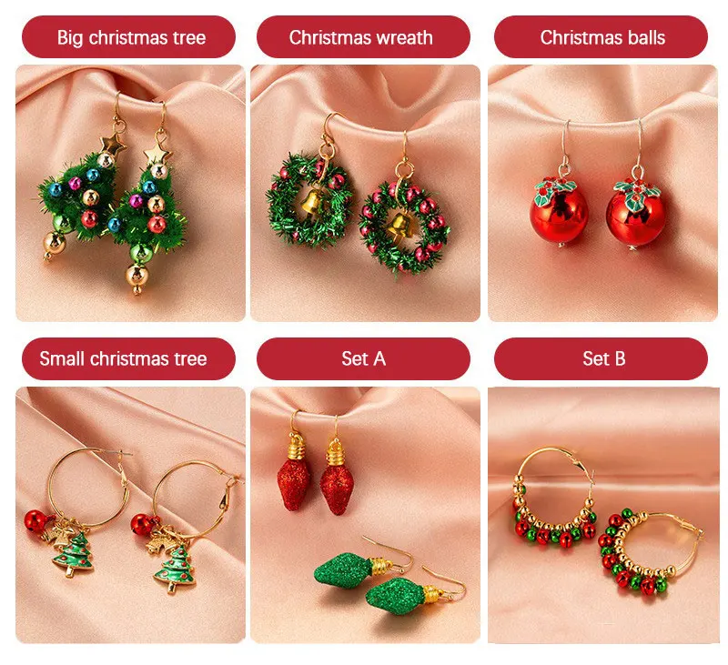 1 комплект1 пара, женские серьги-кольца в виде рождественской елки