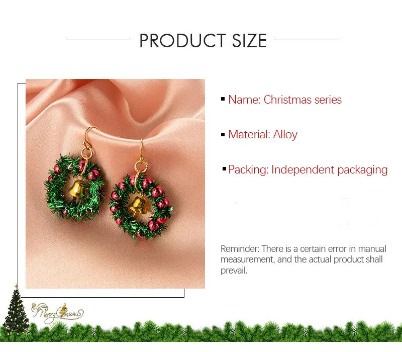 8 сезонов Рождественская елка снежинка венок колокольчик серьги-кол...