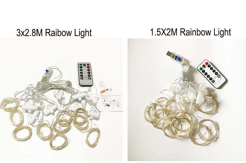 Спецификация:Напряжение: 5 ВРазъем питания: USBЦвет: эффект радугиМатериал: ПВХСветильник с крючком: ДаСтрока Размеры: 1,5x2 м/3X2.8MКоличество СВЕТОДИОДНЫЙ: 200 светодиодный s / 280 светодиодный sСветодиодный срок службы: 5000Hs