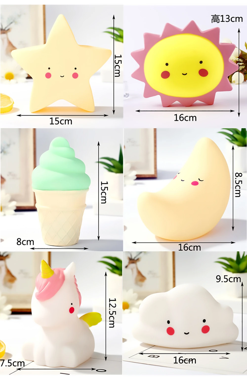 Милый ночник со звездами, Луной и облаками, светодиодный Ночной светильник в виде единорога и динозавра на Рождество, новогодний подарок, декоративная лампа для детской спальни