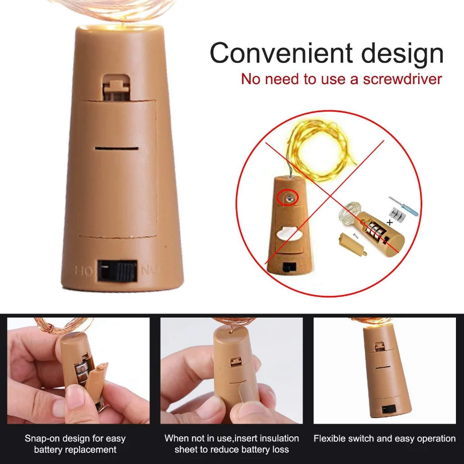 6 шт.лот пробковый светильник для винной бутылки 2 м 20 светодиодов...