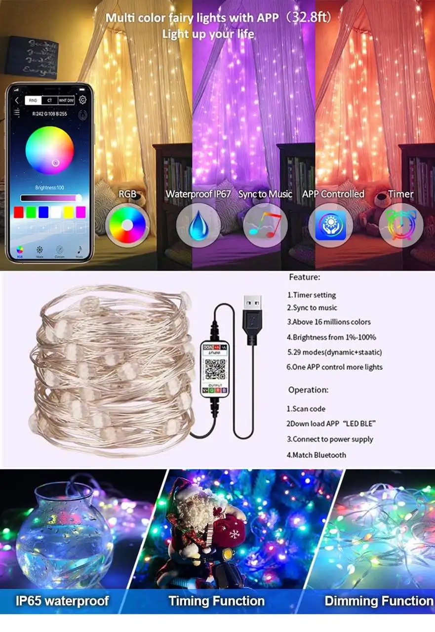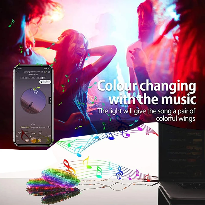 С нашими светодиодными сказочными лампами, меняющими цвет, у вас будут такие возможности, как Удаленное включение/выключение струнных огней, выбор или создание вашего любимого цвета, тусклый/яркий для регулировки яркости, синхронизация с музыкой или голосом. Вы можете легко Украсить детскую комнату, спальню или стол.