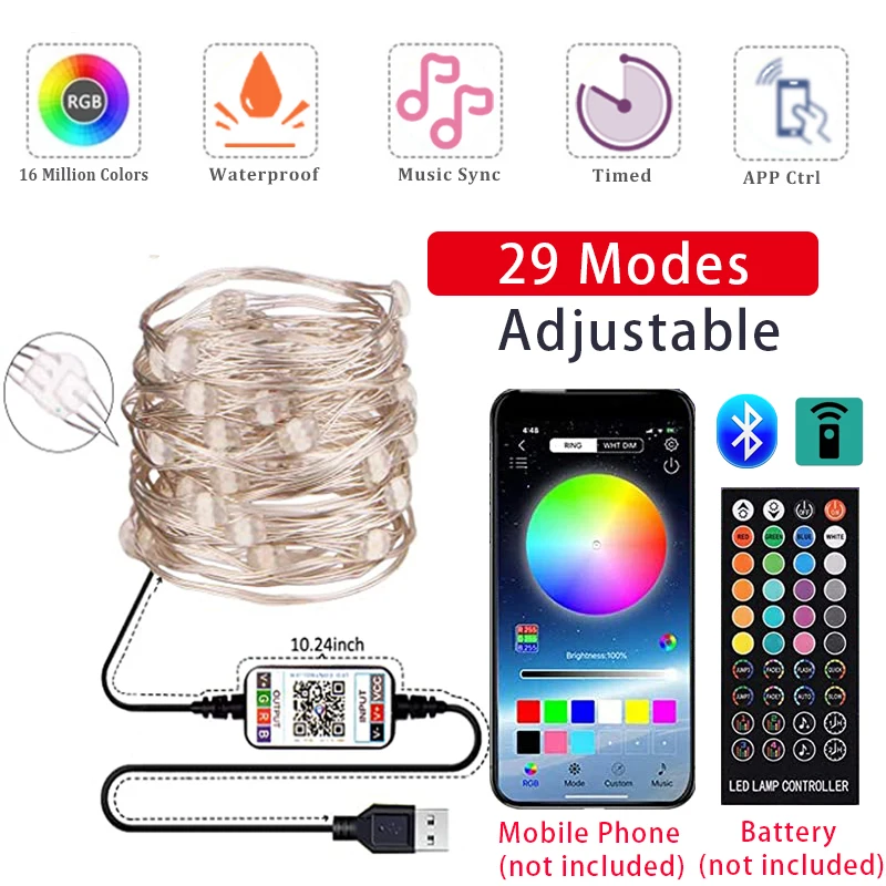 RGB Гирлянда декоративные огни = 16 миллионов цветов комбинаций. Эти светодиодные гирлянды идеально подходят для украшения для девочек/мальчиков в спальню, для внутреннего/наружного освещения, для декора рабочего места, их очень легко прикрепить к любой поверхности. Это может быть украшение на день рождения или вечерние украшения.