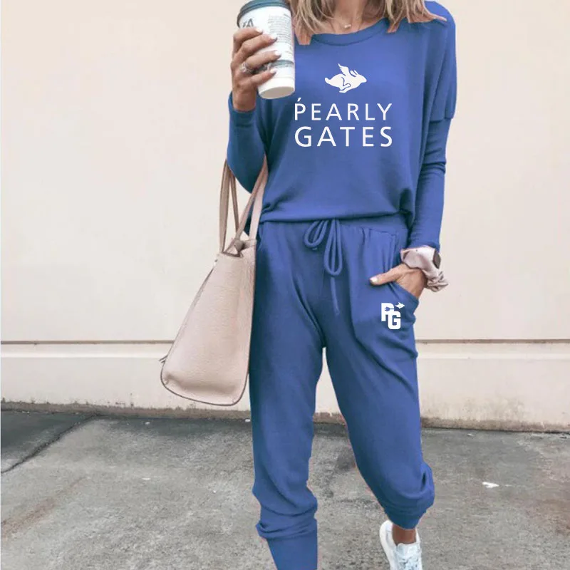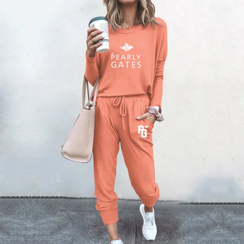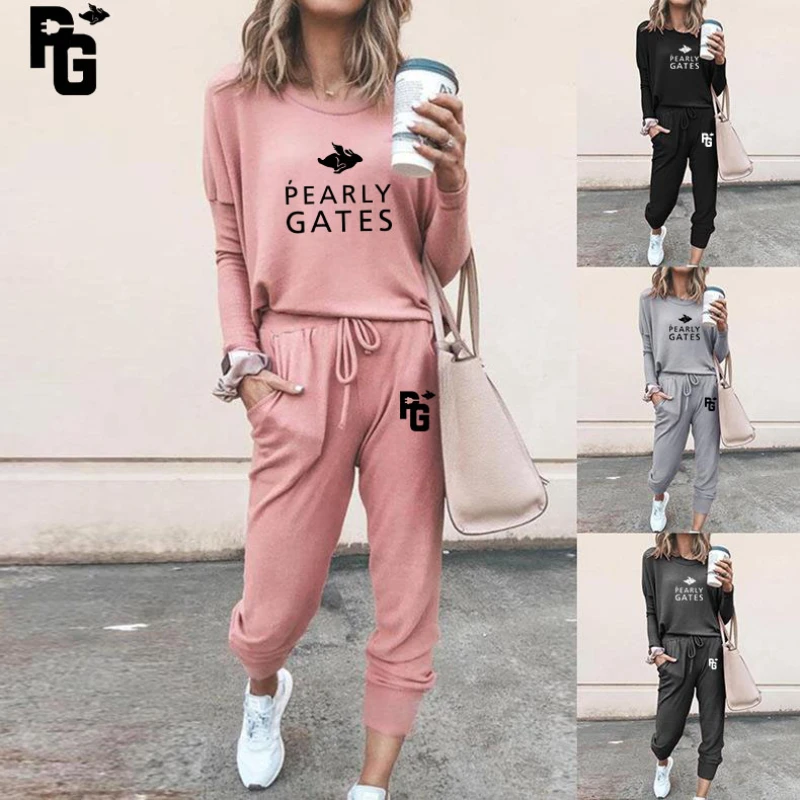 Женский зимний свитшот, пуловер с круглым вырезом и спортивные штаны, комплект из двух предметов, Повседневная модная одежда с принтом PG, 2021