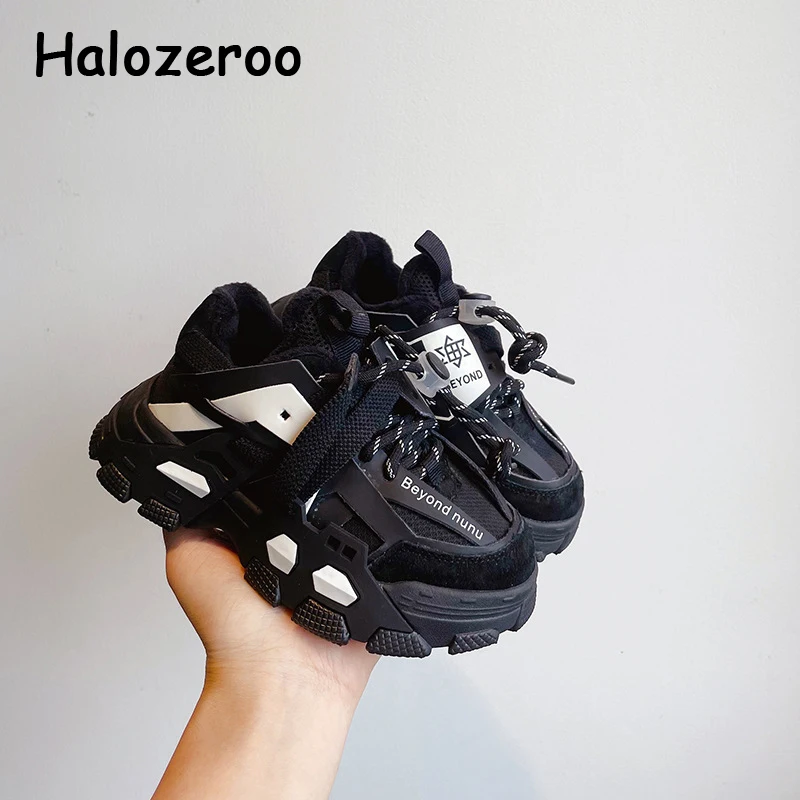 Кроссовки детские из натуральной кожи, массивные, Брендовые спортив...
