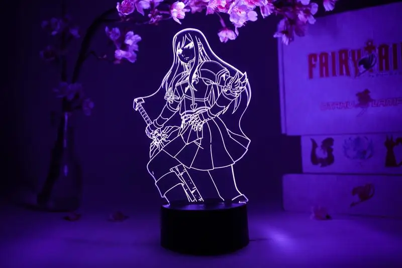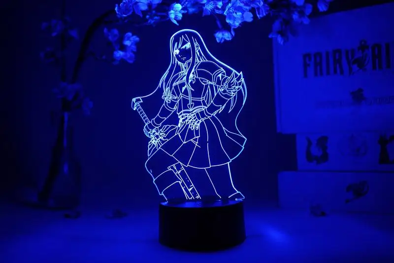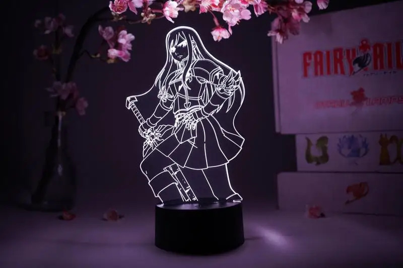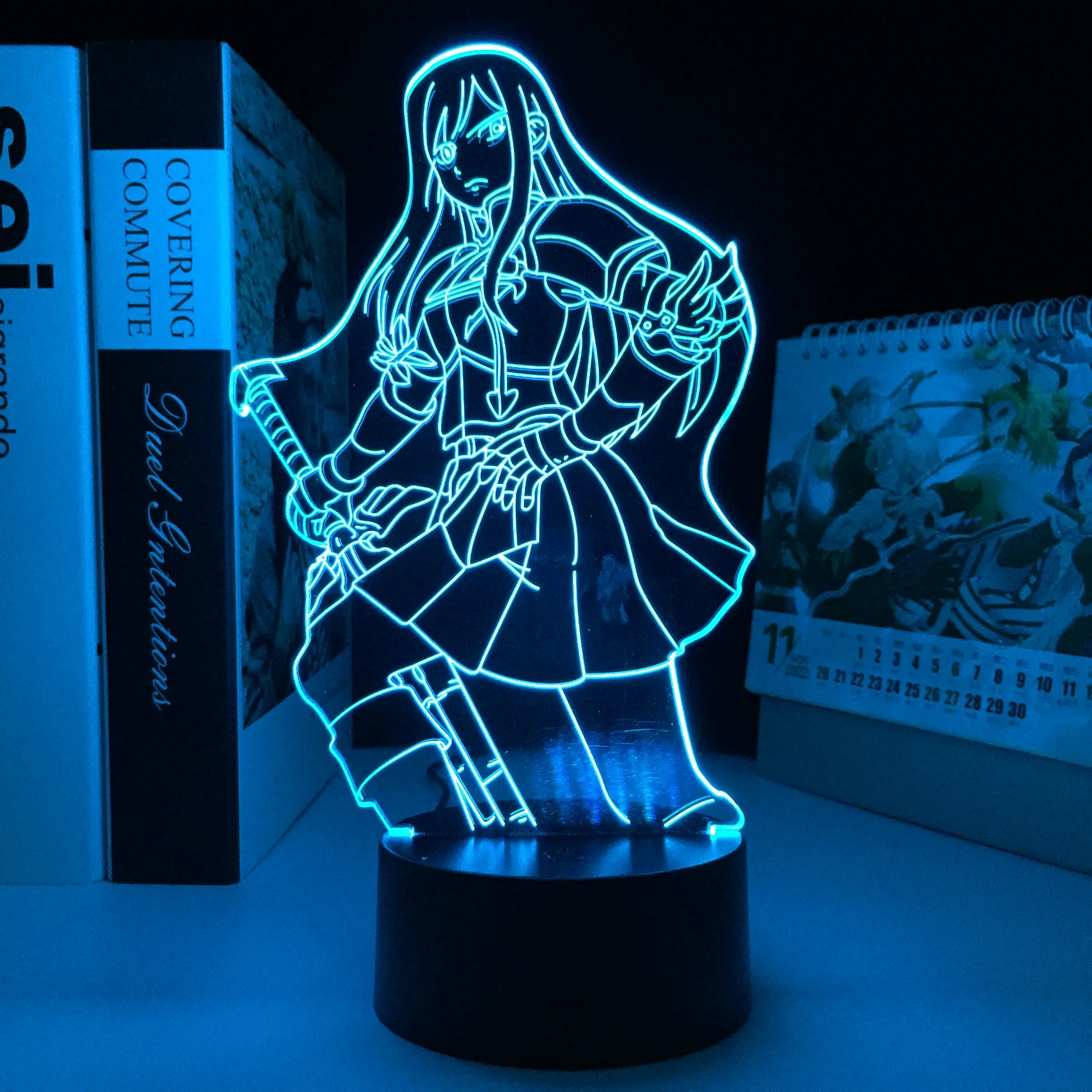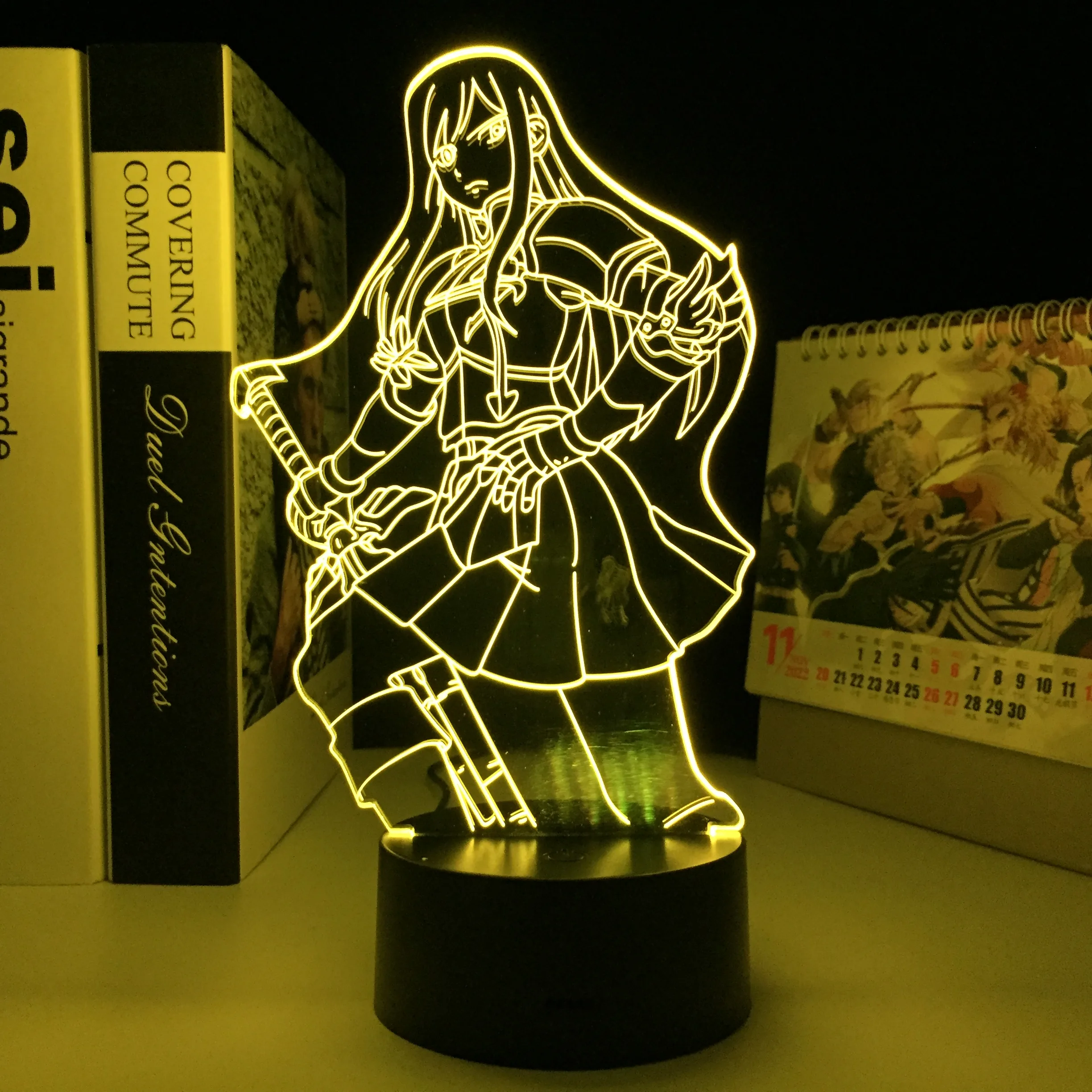 Аниме-фигурка алый хвост Erza, ночник, светодиодный светильник для детской спальни, Декор, подарок на день рождения, манга, 3D настольная лампа