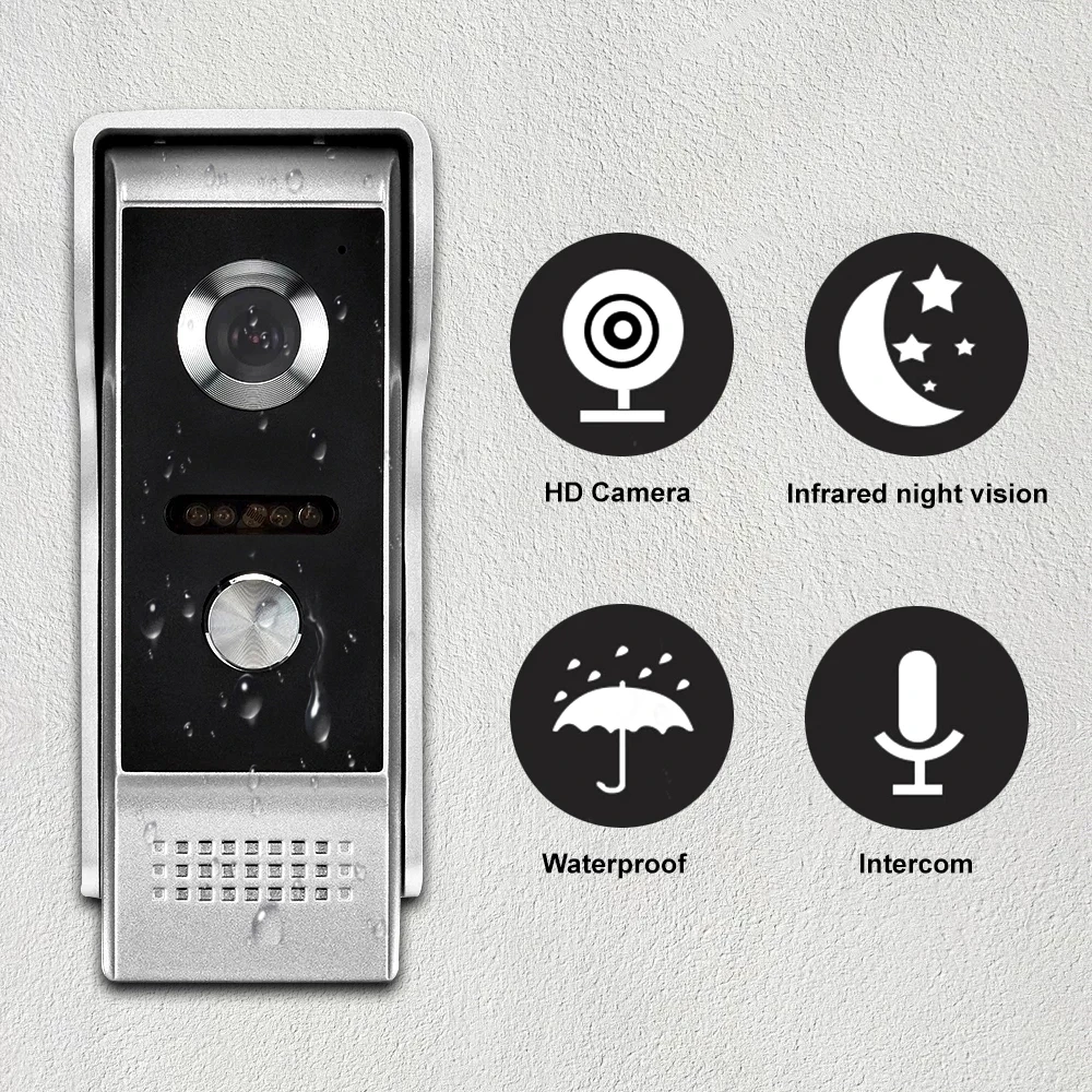 Видеодомофон с TFT-монитором 7 дюймов, видеодомофон, видеозвонок с камерой, Водонепроницаемая камера ИК-видео, камера 100 метров для квартиры