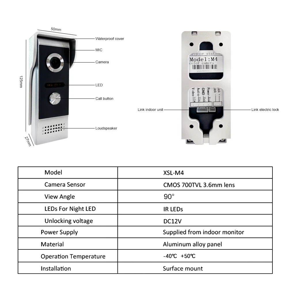 * Разблокировка одной кнопкой делает дом более безопасным Дверной телефон может использоваться с электрическим замком 12 В, так что вы можете подключить электрический замок к системе. С помощью этой функции вам не нужно идти к двери, чтобы разблокировать ваших гостей, вам просто нужно нажать кнопку разблокировки на дисплее. Это принесет вам и вашей семье большое удобство. (Этот электрический замок не входит в комплект, если он вам нужен, пожалуйста, свяжитесь с нами.)