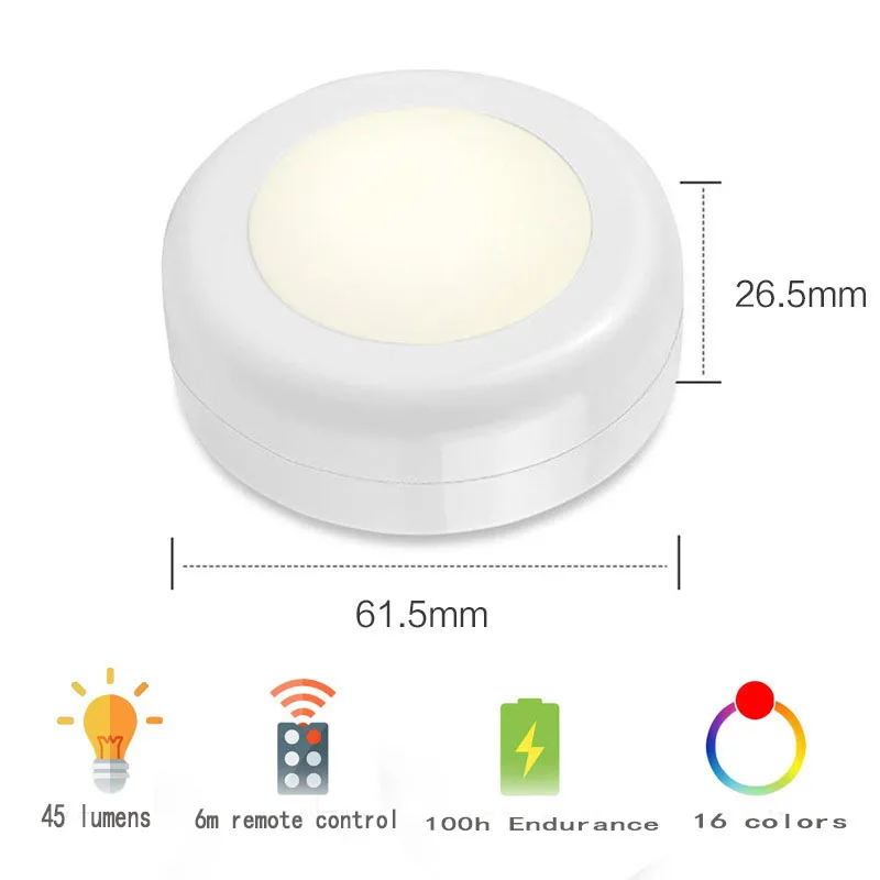 Комплектация: 3 упаковки: 3 Ночной светильник + 3 двухсторонних клея + 1 пульт дистанционного управления.