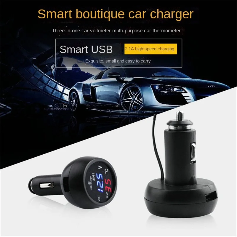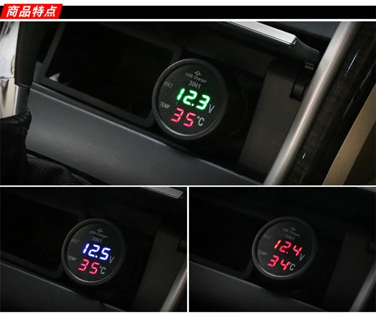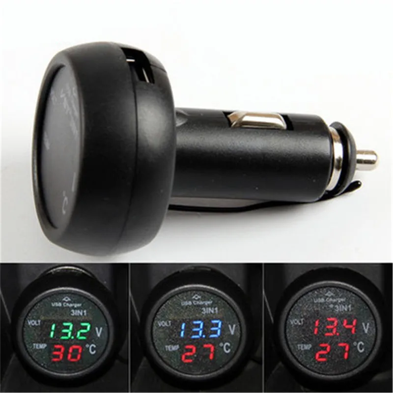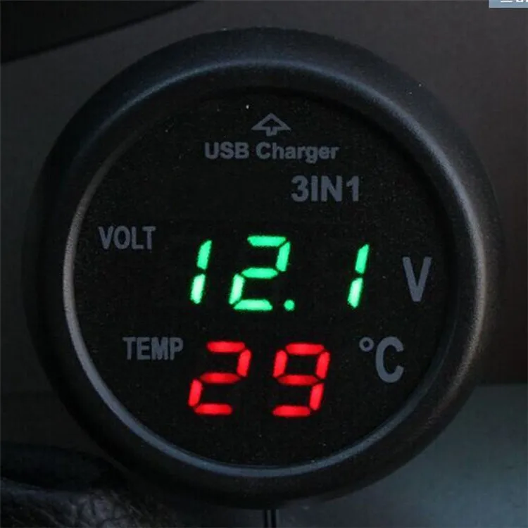 Универсальный автомобильный вольтметр 12 в 24 В Автомобильный светодиодный цифровой вольтметр датчик термометр USB зарядное устройство измеритель напряжения