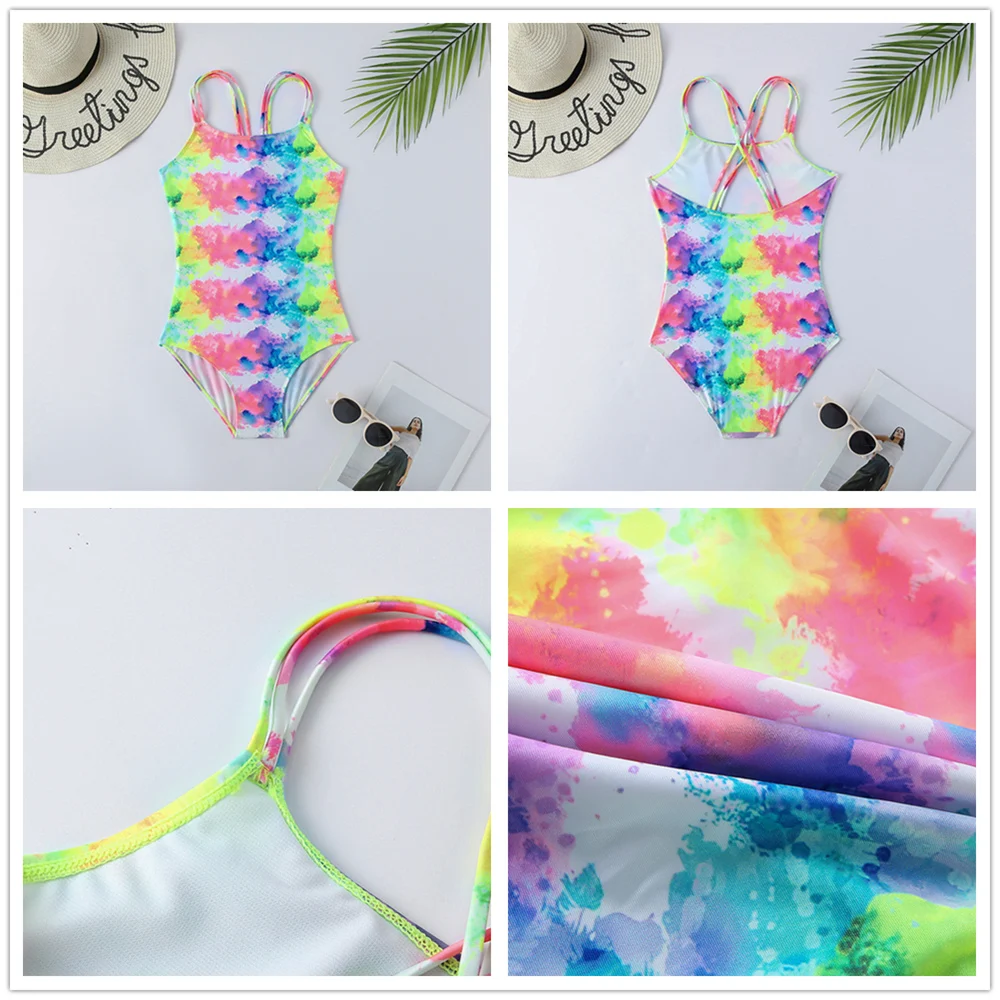 Детский слитный купальник с вышивкой, на Возраст 3-14 лет