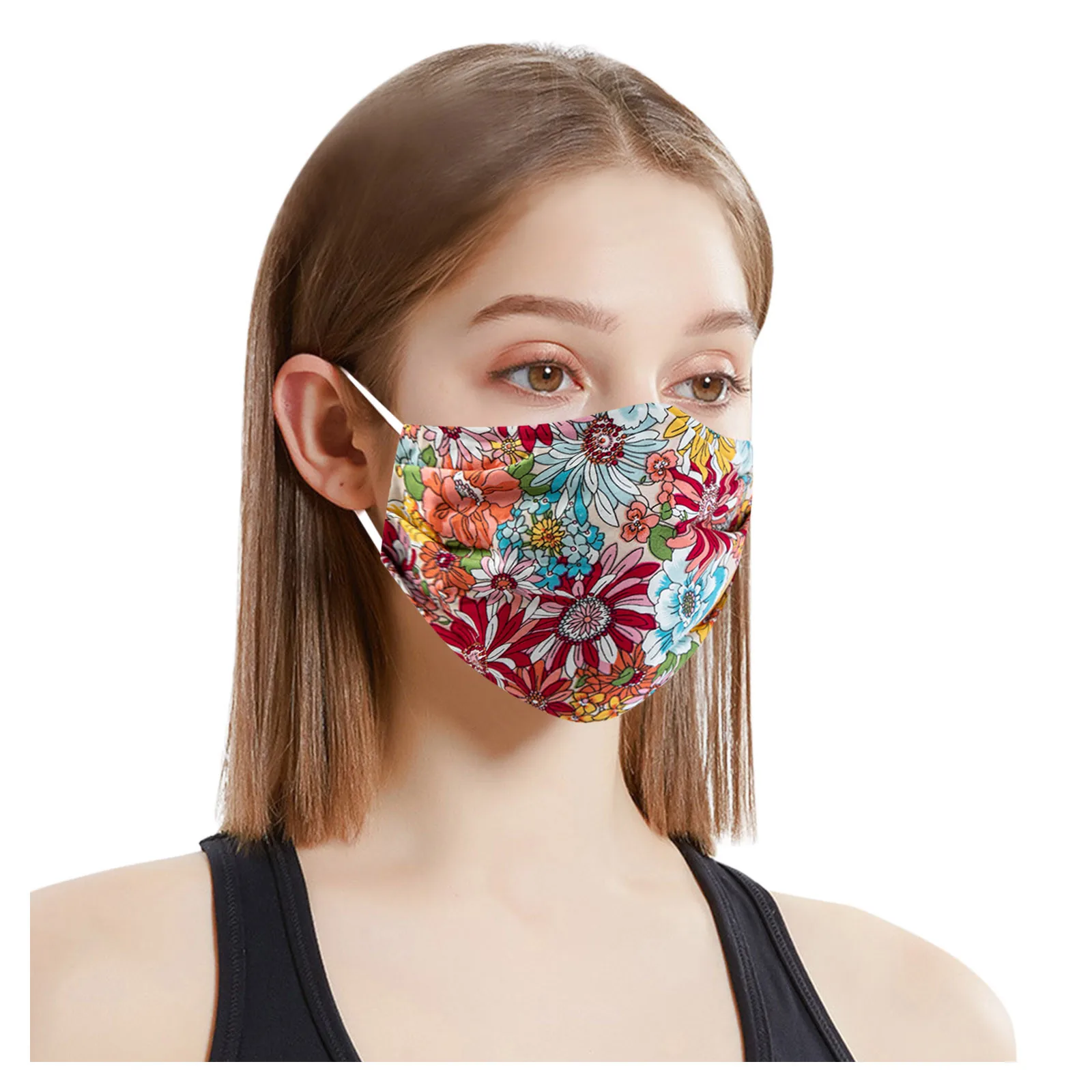 Многоразовая моющаяся маска для лица, с цветочным принтом, для взро...